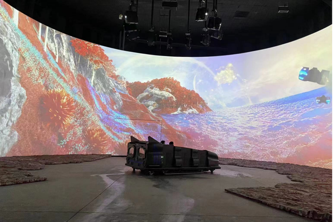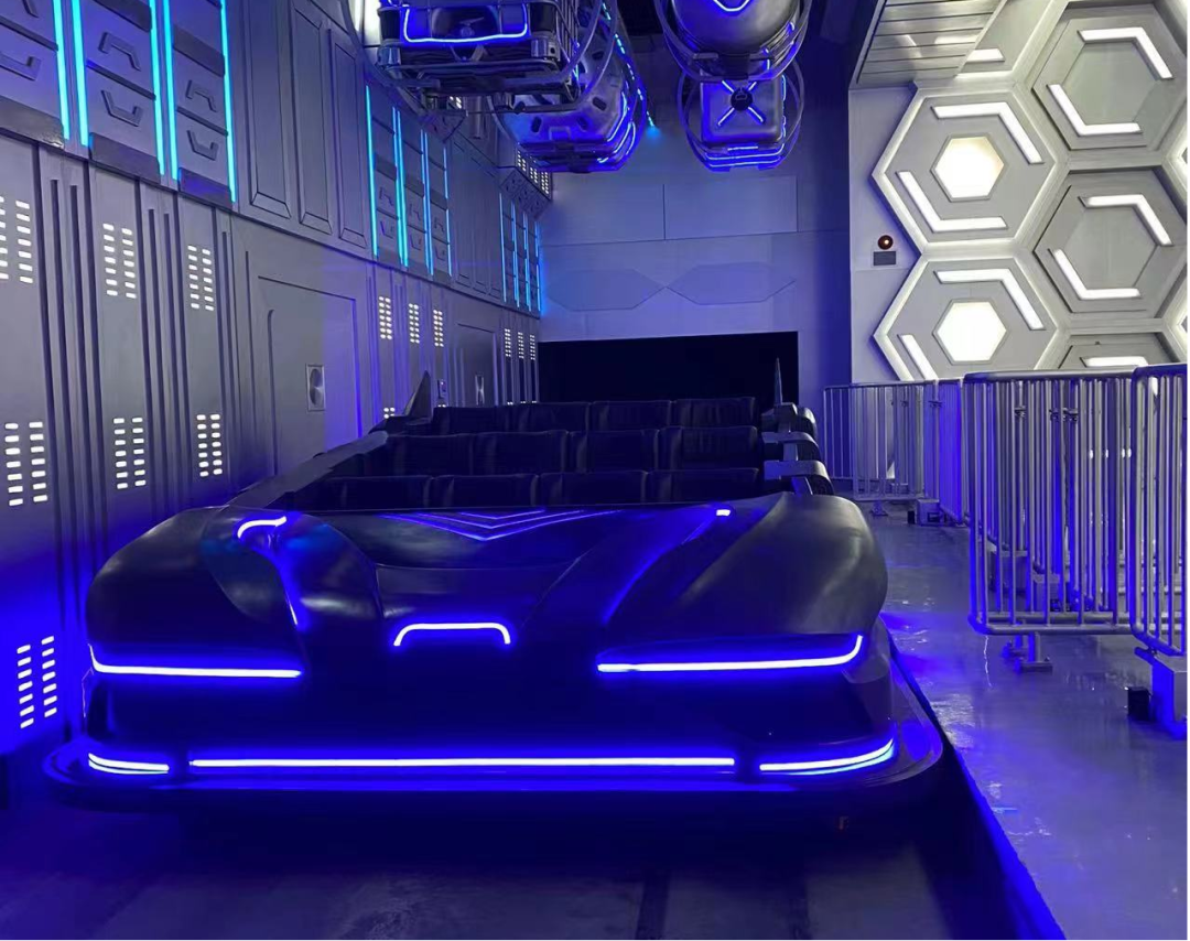 顛覆于傳統(tǒng)的動感影院,通過超大環(huán)幕170°投影視覺,六自由度動感平臺、裸眼3D立體投影效果、震撼的5.1環(huán)回立體聲效果以及逼真場景和特效,將游客帶入驚險刺激的動漫故事情節(jié)中之中,響應靈敏的六自由度12座座艙按照故事劇情將各種行駛動作表現(xiàn)得淋漓酣暢,使游客得到如身臨其境的高沉浸體驗。