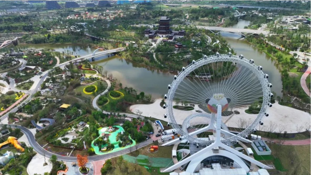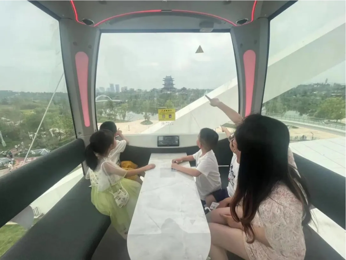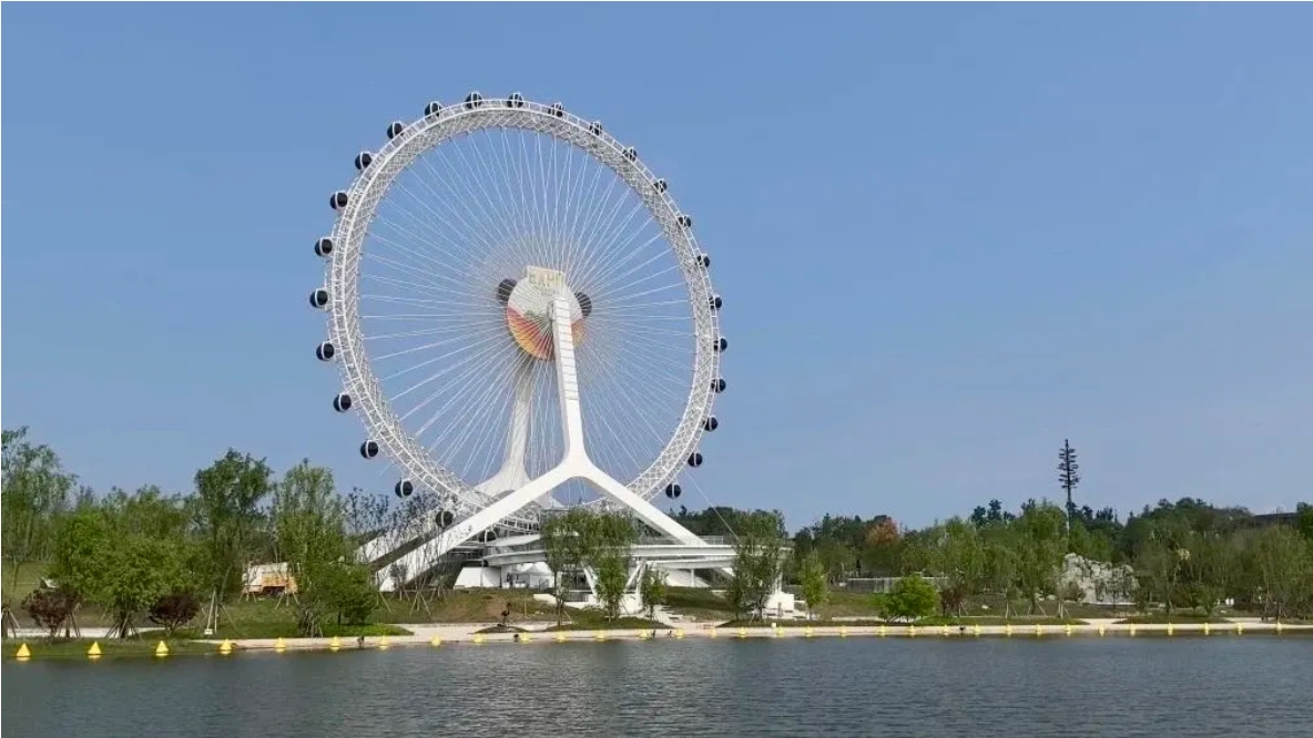 6月1日,由金馬游樂深化設計、制造及安裝的成都世園會“天府眼”摩天輪正式投入運營?!疤旄邸蹦μ燧單挥谑缊@會主會場,是園區(qū)地標“世園十景”之一,也是成都世園會主會場最高的設施。