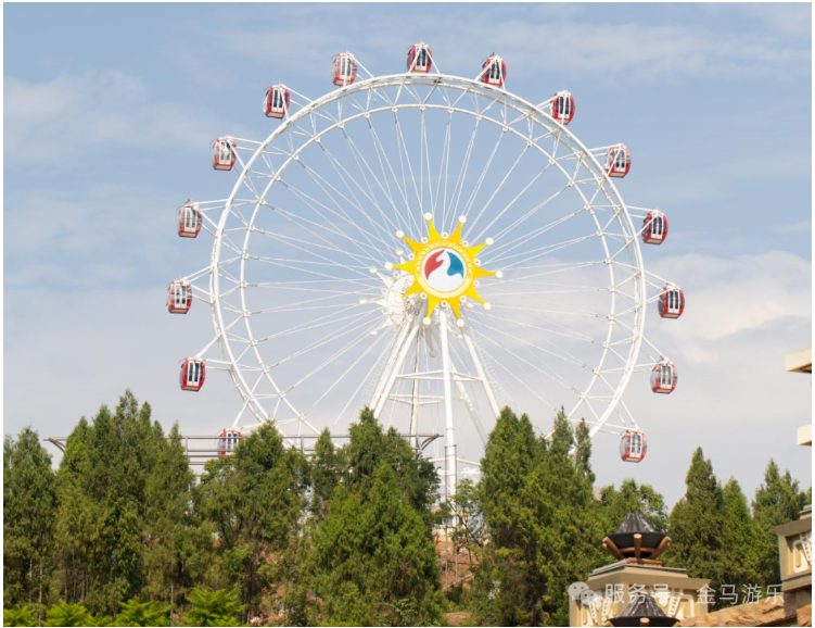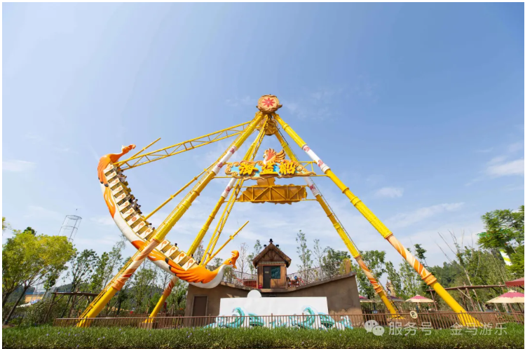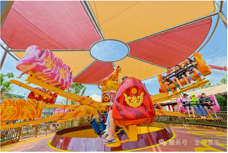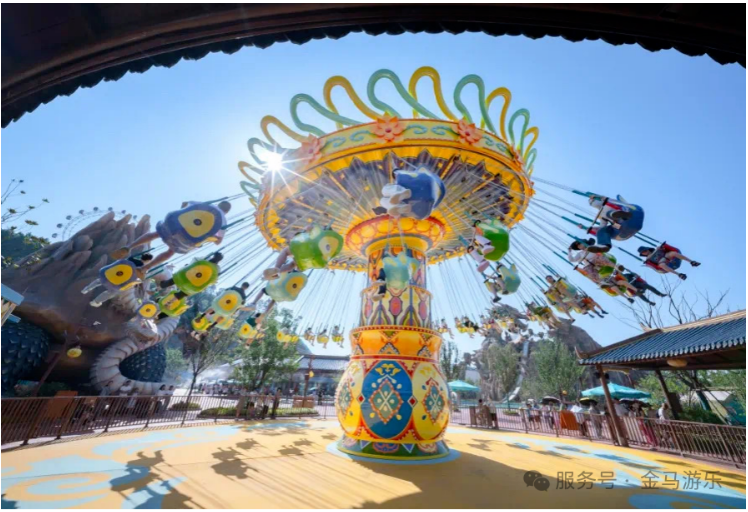 在資陽方特國色春秋中,摩天輪、自控飛機、跳傘塔、太空梭、海盜船等十余款游樂設備,均由金馬游樂進行主題化外觀定制。憑借規(guī)模領先的專業(yè)技術團隊與成熟的定制服務體系,金馬從數(shù)字化設計、建模,到國際水平的工藝制作,全程把控,最終實現(xiàn)藝術級主題呈現(xiàn),強化設備與園區(qū)主題環(huán)境的深度融合,營造出高品質的沉浸式游樂氛圍。