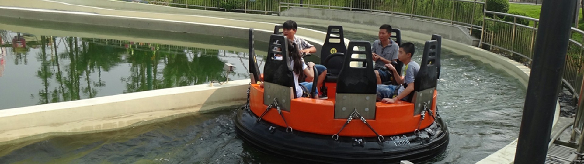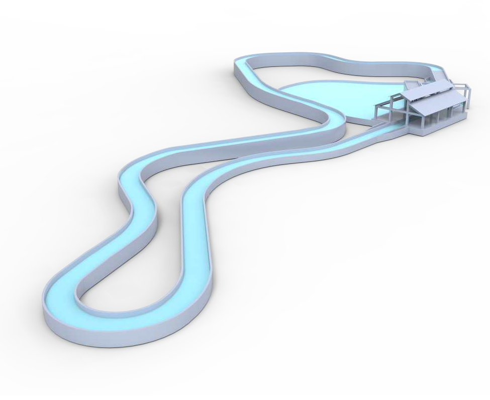 峽谷漂流,筏體經(jīng)提升系統(tǒng)由站臺(tái)提升至水道的高位后,由主泵推動(dòng)的流水驅(qū)動(dòng)前進(jìn)。船速由水道形狀決定,通過(guò)水底阻水堰的定位設(shè)置來(lái)制造洶涌的水波,沿途可對(duì)水道兩旁進(jìn)行景觀包裝來(lái)制造融入自然的環(huán)境,讓游玩體驗(yàn)更親近大自然。