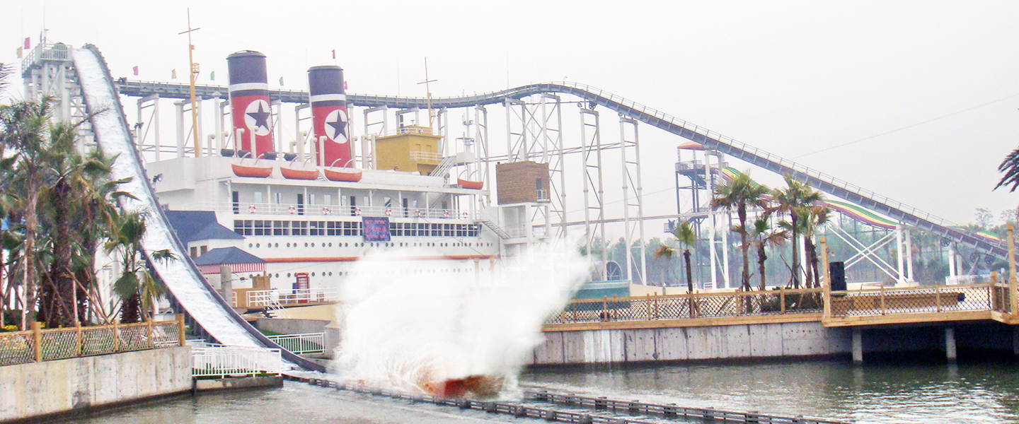 激流勇進設備提升高度28米,軌道蜿蜒而行到達高點俯沖。游玩過程中乘客體會高速沖浪、失重、離心的各種刺激感受,同時可欣賞浪花水簾的奇景,其樂無窮。