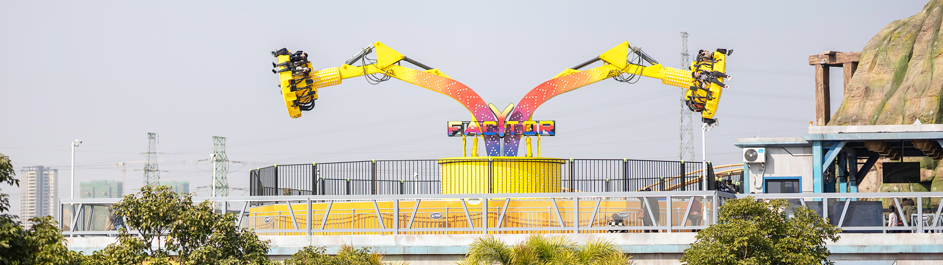 繞垂直軸旋轉(zhuǎn)、座艙繞支臂軸旋轉(zhuǎn)的陀螺類游樂設(shè)施;大臂向上拉升,到達(dá)上限位置后,座艙旋轉(zhuǎn);傾斜運(yùn)行、俯瞰大地,體驗(yàn)翻倍;