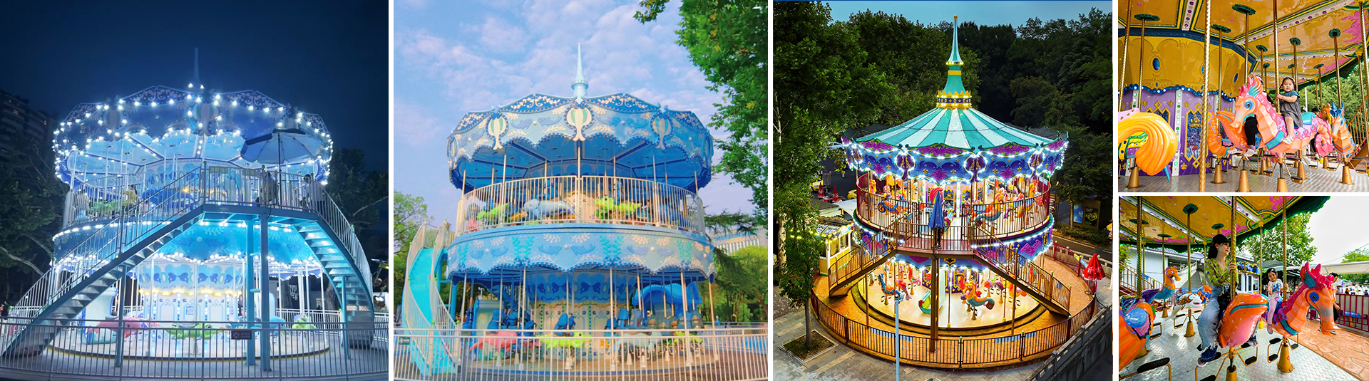 豪華雙層轉(zhuǎn)?是上、下層可單獨(dú)作旋轉(zhuǎn)運(yùn)動(dòng)的裝飾豪華的轉(zhuǎn)?,采?歐式古典豪華的裝飾?格。蓬頂?shù)幕使诩馑睕_云宵,天花板、內(nèi)圍板鑲嵌著彩?浮雕,并配備彩燈。?匹及宮庭式??結(jié)合多彩的花飾,造型夢(mèng)幻華麗?碧輝煌。