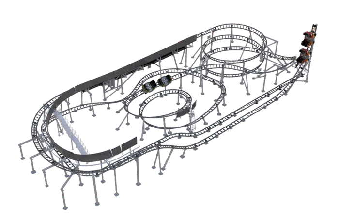 酷炫過山車是應用LSM電磁彈射技術(shù)開發(fā)的全新一代過山車,具有瞬時推力大的特點。短行程的發(fā)射使列車3秒內(nèi)完成時速從0到43km/h的加速,強勁的推背感緊接U型回蕩、貼地?速轉(zhuǎn)彎、以及雙層螺旋回環(huán)一氣呵成,讓游玩體驗豐富刺激。無動力自旋式車體配合腿部壓桿,極大提升了乘客的自由感和舒適度。酷炫過山車尤其適合室內(nèi)樂園。