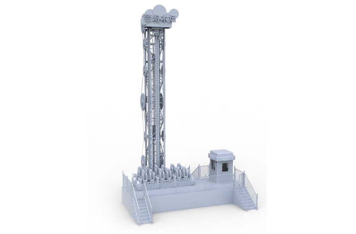 雙排青蛙跳以跳躍為主題,座艙在塔體上做上下移動(dòng),當(dāng)運(yùn)行到最高位置時(shí)座艙會(huì)向前傾轉(zhuǎn)約10°,令乘客體驗(yàn)到失重、超重以及在高空突然前傾的多重游玩感受。