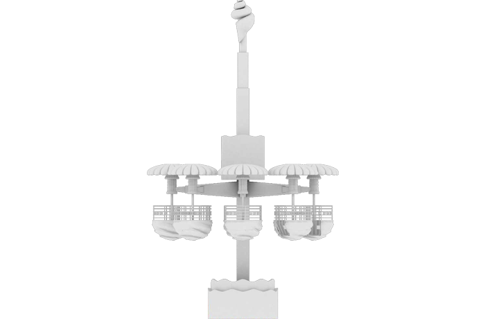 逍遙塔集旋轉(zhuǎn)、升降兩大運(yùn)動形式于一體。設(shè)備啟動后,座艙在升降時繞立柱中心軸旋轉(zhuǎn),同時座艙還可以自由旋轉(zhuǎn)。雙重旋轉(zhuǎn)感受搭配升降帶來的失重與超重感,為游客提供豐富的乘坐體驗(yàn)。
