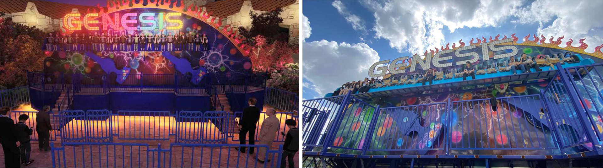 排山倒海在液壓馬達(dá)的驅(qū)動(dòng)下,兩個(gè)擺臂帶動(dòng)座艙轉(zhuǎn)動(dòng),配合座艙的整體平動(dòng),實(shí)現(xiàn)圓形的座艙運(yùn)動(dòng)軌跡。乘客并排座于座艙中充分感受順時(shí)、逆時(shí)交替變速旋轉(zhuǎn),勢(shì)如上山下山的時(shí)空交錯(cuò)感。