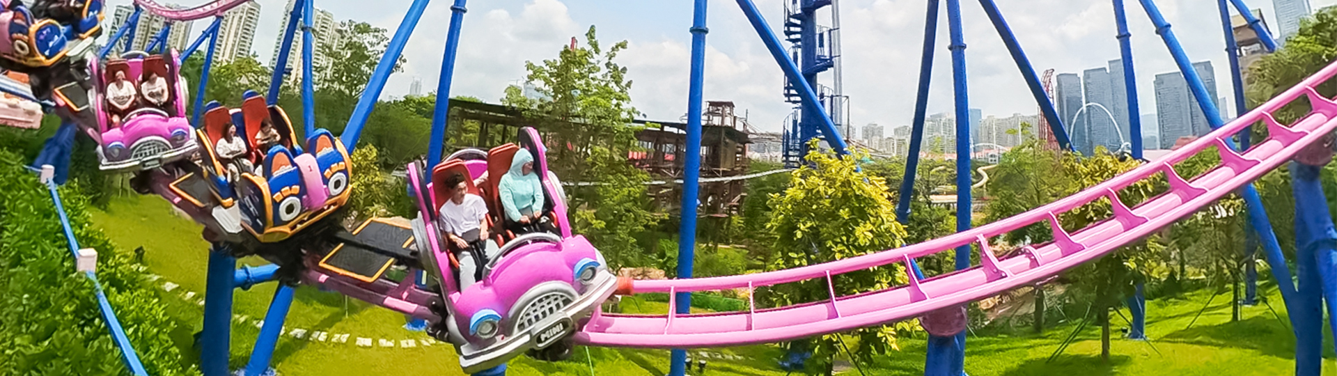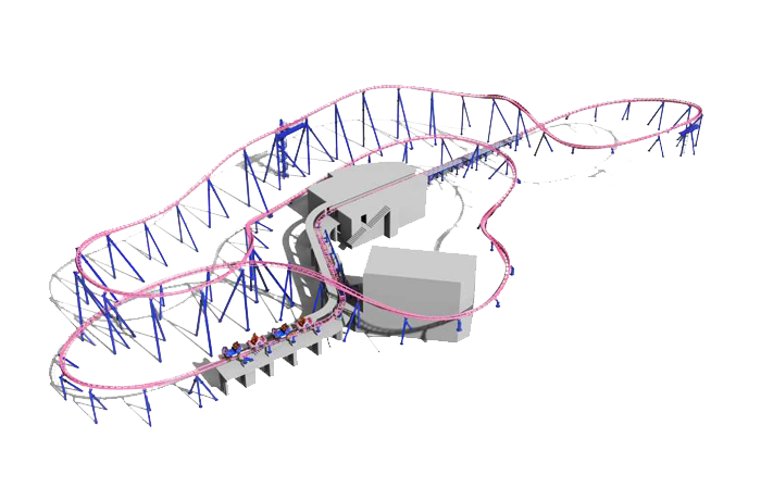 列式自旋滑車為家庭式自旋滑車,采用LCM電磁彈射驅(qū)動(dòng),雙彈射段結(jié)合自旋車體,暢享多重游玩體驗(yàn)。列車瞬時(shí)彈射出發(fā),高速奔馳進(jìn)入上升彎道沖上坡頂,緊接著通過S形轉(zhuǎn)彎到達(dá)半空進(jìn)入第二段彈射。第二次彈射將乘客送到軌道制高點(diǎn),再螺旋下降。過程中自旋車體自由旋轉(zhuǎn),歡樂加倍。