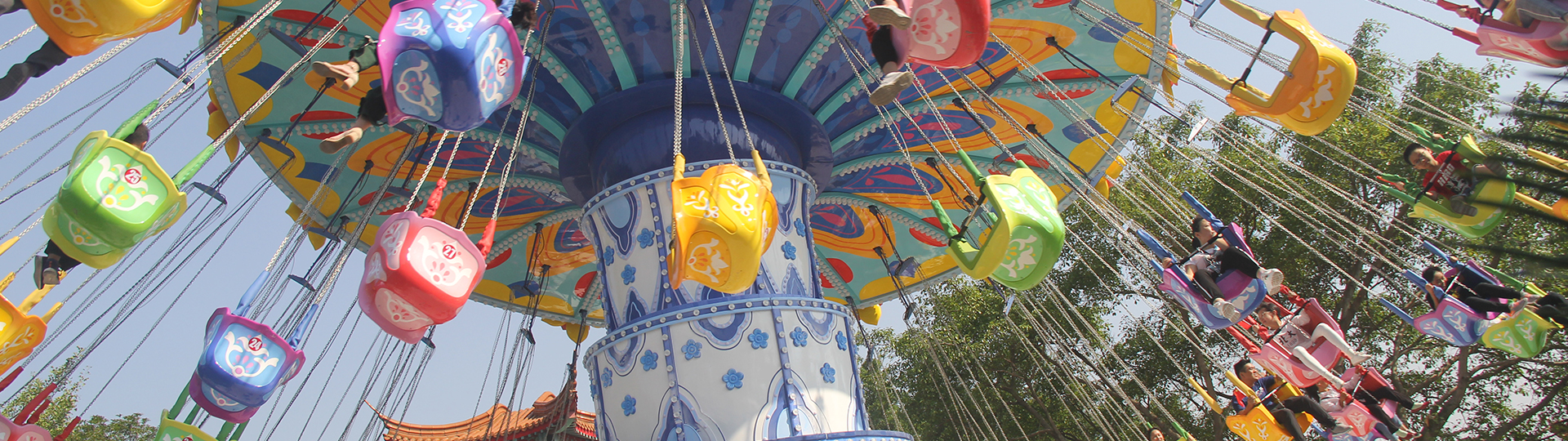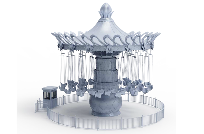 颶風(fēng)飛椅設(shè)備通過傘形轉(zhuǎn)盤的旋轉(zhuǎn)和中間轉(zhuǎn)臺的錯位旋轉(zhuǎn),實(shí)現(xiàn)飛椅的波浪式運(yùn)動,乘客猶如在空中自由飛翔飄蕩。