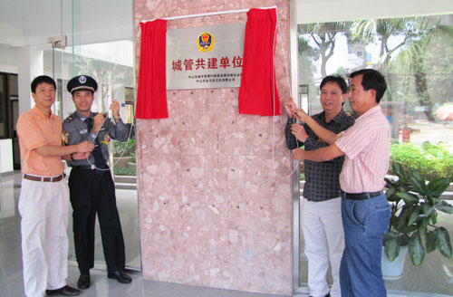 為了貫徹落實(shí)“平安中山”、“平安石岐”的工作精神,進(jìn)一步密切政企關(guān)系,促進(jìn)“三個(gè)適宜”和諧中山的建設(shè),2010年10月22日上午,我司與中山市城管執(zhí)法局石岐區(qū)分局舉行了“共建單位”簽約接牌儀式。