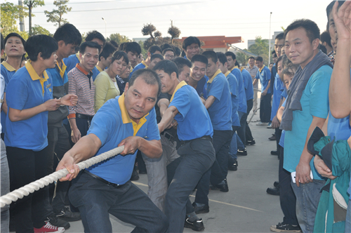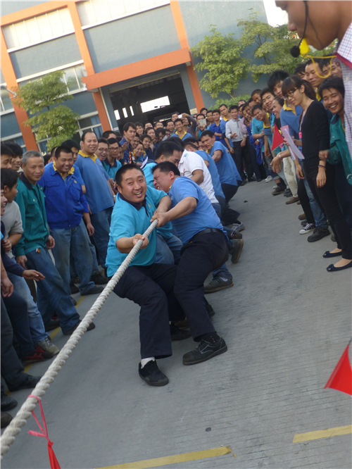 當(dāng)日下午16:00,公司大門通道頓時(shí)沸騰起來(lái),精益拔河比賽即將開始。在主持人進(jìn)行簡(jiǎn)單的規(guī)則說(shuō)明后,參賽代表隊(duì)根據(jù)抽簽迅速就位,蓄勢(shì)待發(fā)?!皢簟薄凹佑?!加油??!”隨著一聲哨響,比賽開始,各隊(duì)卯足了勁,奮力拼搏:生產(chǎn)隊(duì)伍團(tuán)結(jié)一致,擰成一股繩,合成一道力,其斗志及實(shí)力當(dāng)仁不讓;辦公室隊(duì)伍不露怯色,他們用原理分析,受力解構(gòu),狹路相逢勇者爭(zhēng)鋒,書生意氣一路凱歌高奏。面對(duì)如此激烈的比賽,來(lái)自各個(gè)部門的啦啦隊(duì)也熱火朝天,忘我地為參賽健兒加油打氣,吶喊聲響徹了整個(gè)廠區(qū)。最后,機(jī)械A(chǔ)車間1隊(duì)榮獲摩天輪獎(jiǎng),物控部獲旋轉(zhuǎn)木馬獎(jiǎng),機(jī)械A(chǔ)車間2隊(duì)獲颶風(fēng)飛椅獎(jiǎng),人力資源2隊(duì)、玻璃鋼車間同獲碰碰車獎(jiǎng)。